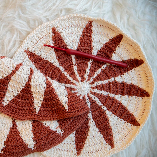 Dans le crochet tapisserie, les fils non utilisés sont généralement cachés à l'intérieur des points de l'ouvrage à mesure qu'ils sont crochetés, ce qui crée un tissu dense et uniforme sans trous. Cette technique est souvent utilisée pour reproduire des motifs géométriques, des images ou des designs plus complexes sur des projets au crochet tels que des couvertures, des coussins ou des tapis.
