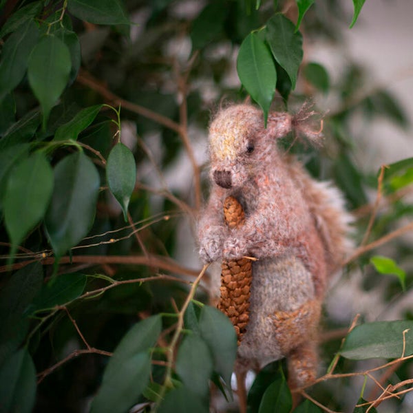Tricoté à la main en Mérino et Mohair. Mon écureuil tricoté est le fruit d'un travail soigneux, réalisé avec passion et attention aux détails. Chaque pièce est unique, ce qui signifie que vous adopterez un ami à la personnalité charmante, qui sera le vôtre et le vôtre seulement !