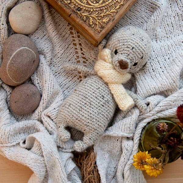 Petit Archie est un petit ourson crocheté en Merino. Il est très grand pour ses 6 mois... 22 cm.