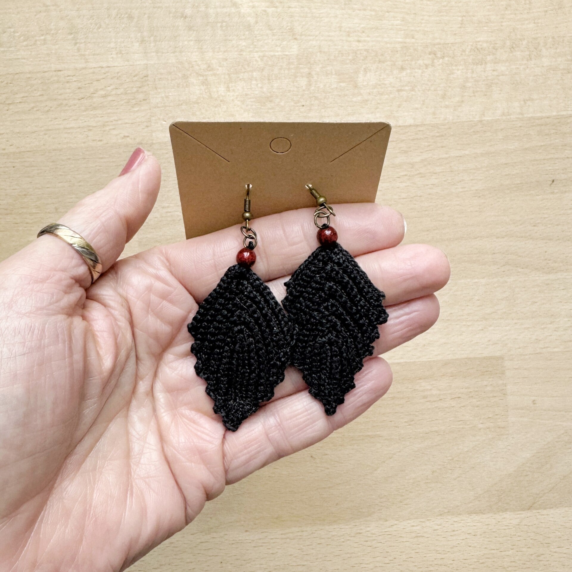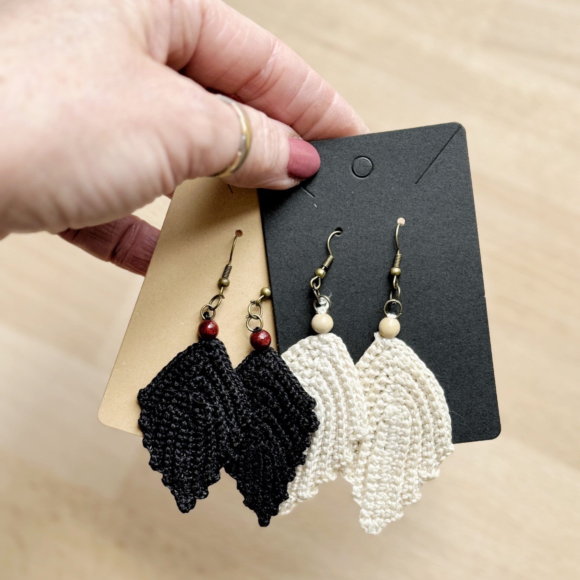 Boucles d'oreilles - feuille beige ou noir - Disponible sur commande